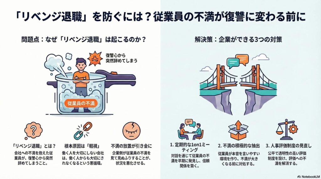 その感情は静かに蓄積していき、最後に『リベンジ退職』という形で返ってくる。