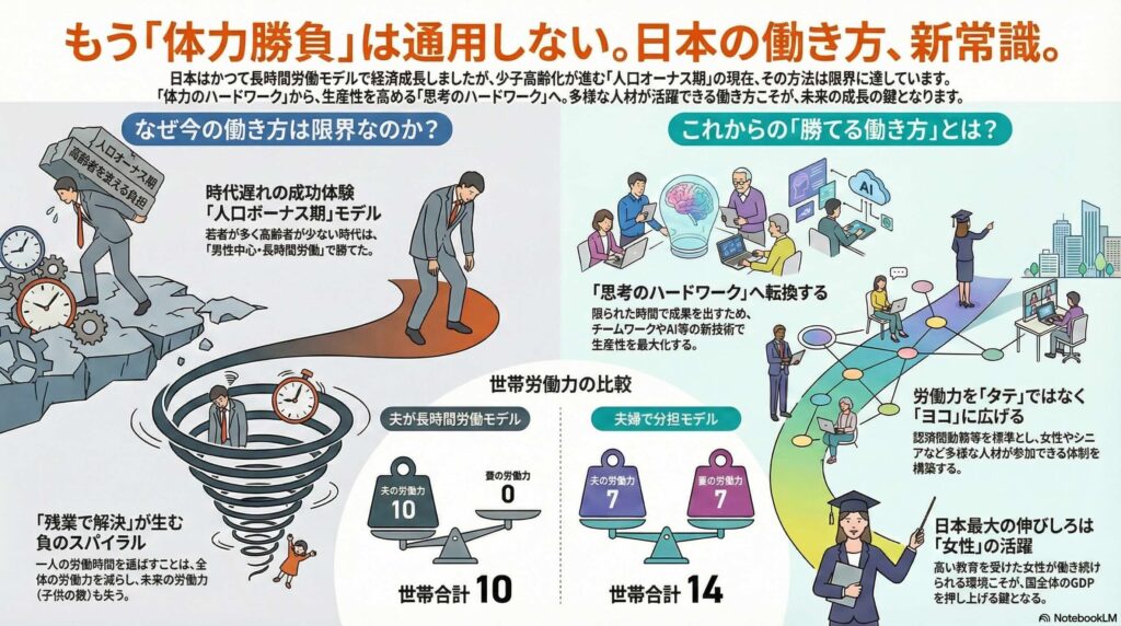 人口オーナス期の日本に必要な働き方だと思う。